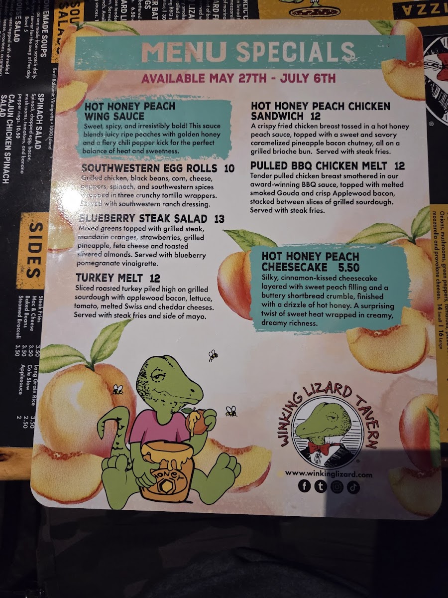 For heartier appetites, the Lizard Grill section boasts a mouthwatering BBQ Chicken Dinner and a tender 12oz Strip Steak, expertly seasoned for maximum flavor. Sides like crispy Steak Fries and creamy Mac & Cheese complement your meal flawlessly. Patrons rave about friendly service and daily specials, making Winking Lizard a delightful spot to savor both food and camaraderie. Don’t miss their famous fried pickles, a fan favorite that leaves a lasting impression!
